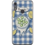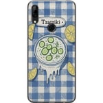 Huawei Y6s (2019) Genomskinligt Skal Tzatziki skål grekisk mataffisch dill citron gurka blå rutigt mönster köksinredning vintage stil tryck