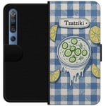 Xiaomi Mi 10 Pro 5G Plånboksfodral Tzatziki skål grekisk mataffisch dill citron gurka blå rutigt mönster köksinredning vintage stil tryck