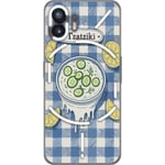 Nothing Phone (2) Genomskinligt Skal Tzatziki skål grekisk mataffisch dill citron gurka blå rutigt mönster köksinredning vintage stil tryck