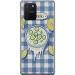 Samsung Galaxy S10 Lite Genomskinligt Skal Tzatziki skål grekisk mataffisch dill citron gurka blå rutigt mönster köksinredning vintage stil tryck