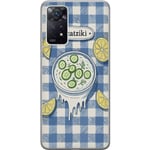 Xiaomi Redmi Note 11 Pro Genomskinligt Skal Tzatziki skål grekisk mataffisch dill citron gurka blå rutigt mönster köksinredning vintage stil tryck