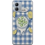 Motorola Moto G53 Genomskinligt Skal Tzatziki skål grekisk mataffisch dill citron gurka blå rutigt mönster köksinredning vintage stil tryck