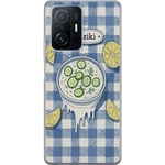 Xiaomi 11T Pro Genomskinligt Skal Tzatziki skål grekisk mataffisch dill citron gurka blå rutigt mönster köksinredning vintage stil tryck