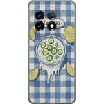 OnePlus 11 Genomskinligt Skal Tzatziki skål grekisk mataffisch dill citron gurka blå rutigt mönster köksinredning vintage stil tryck