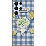 Samsung Galaxy S22 Ultra 5G Genomskinligt Skal Tzatziki skål grekisk mataffisch dill citron gurka blå rutigt mönster köksinredning vintage stil tryck