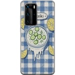 Huawei P40 Pro Genomskinligt Skal Tzatziki skål grekisk mataffisch dill citron gurka blå rutigt mönster köksinredning vintage stil tryck
