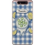 Samsung Galaxy A80 Genomskinligt Skal Tzatziki skål grekisk mataffisch dill citron gurka blå rutigt mönster köksinredning vintage stil tryck