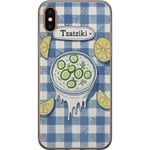 Apple iPhone X Genomskinligt Skal Tzatziki skål grekisk mataffisch dill citron gurka blå rutigt mönster köksinredning vintage stil tryck