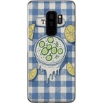 Samsung Galaxy S9+ Genomskinligt Skal Tzatziki skål grekisk mataffisch dill citron gurka blå rutigt mönster köksinredning vintage stil tryck