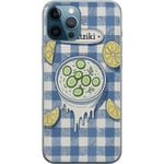 Apple iPhone 12 Pro Max Genomskinligt Skal Tzatziki skål grekisk mataffisch dill citron gurka blå rutigt mönster köksinredning vintage stil tryck