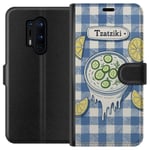 OnePlus 8 Pro Plånboksfodral Tzatziki skål grekisk mataffisch dill citron gurka blå rutigt mönster köksinredning vintage stil tryck