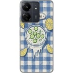 Xiaomi Redmi 13C Genomskinligt Skal Tzatziki skål grekisk mataffisch dill citron gurka blå rutigt mönster köksinredning vintage stil tryck