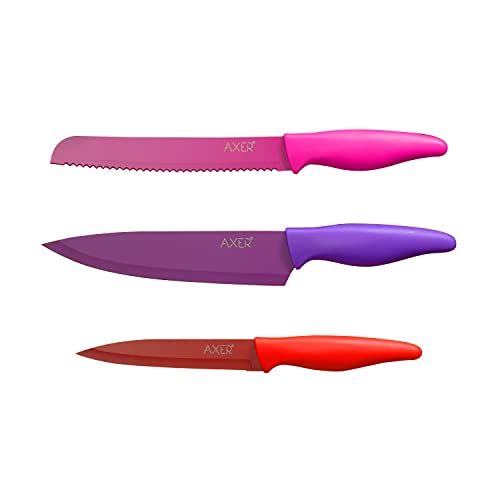 Axer vass knivset för kök – 3-delad köksknivset färgglad – mycket vass kökskniv set professionell kockknivsats rostfritt stål – färgglada knivset hög kvalitet – köksknivset