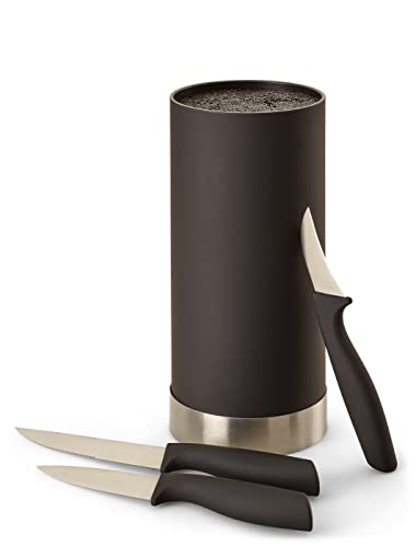 ECHTWERK Knivblock med borstinsats | kökskniv, set om 4 delar | universalkniv | skalkniv | grönsakskniv | kniv av bladstål | silverutgåva, EW-MB-0393
