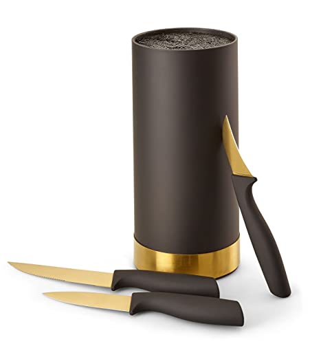 ECHTWERK Knivblock med borstinsats | kökskniv, set om 4 delar | universalkniv | skalkniv | Grönsakskniv | Bladstål | Gold Edition, EW-MB-0371