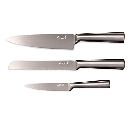 Axer Vass kökskniv metallhandtag – 3-delad knivsats rostfritt stål – kökskniv set professionell – modernt utseende kolstål knivset – kökskniv set – kökskniv helmetall
