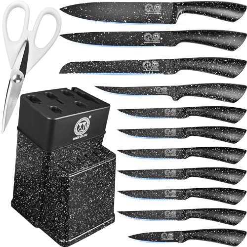 XYJ Knivblocksset, rostfritt stål kökskniv set med hållare, professionell japansk kockknivset, förskärare sax, biffkniv, brödkniv, biffkniv