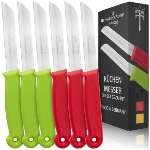Svärdkrone® Skalkniv, set om 10 [MADE IN SOLINGEN – Tyskland] – grönsakskniv fruktkniv – kökskniv liten vass – skärkniv potatisskalkniv – universalkniv (10 x röd – 6 cm blad)