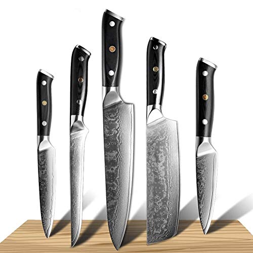 Damaskus kockkniv Damaskus Steel Japan Cleaver Knife styckat kött Utility Fruit kökskniv matlagning Tool (Color : 5PCS Set)