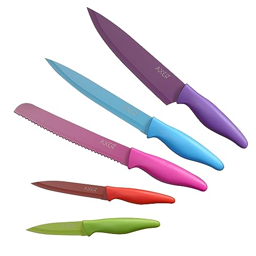 Axer vass knivset för kök – 5-delad köksknivset färgglad – mycket vass kökskniv set professionell kockknivsats rostfritt stål – färgglada knivset hög kvalitet – köksknivset