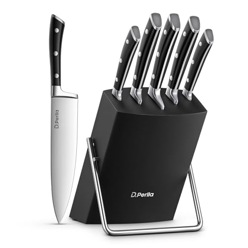 D.Perlla 6-delat kökskniv set med tyska blad av hög kolhalt, skarpt knivblockset med snyggt akacia träblock, svart