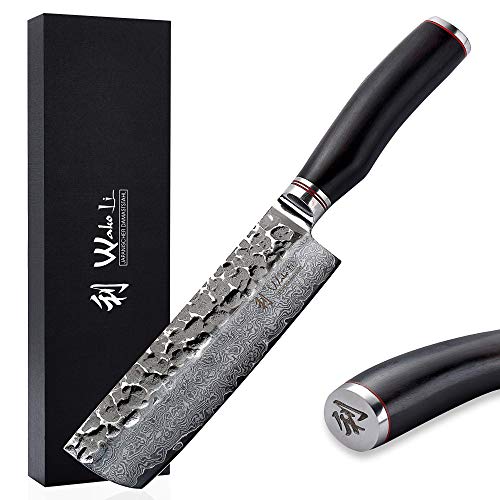 Wakoli EBO Premium nakirikniv med 16,5 cm blad och hammarslag tillverkad av 67 lager äkta damaskstål med svart ekträhandtag I damaskkniv, kökskniv, set och professionell kockkniv