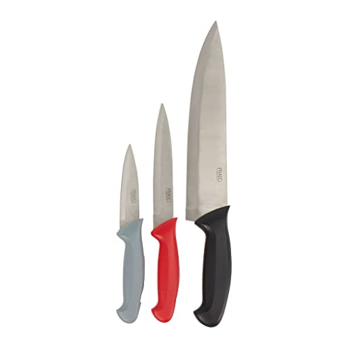 Kuhn Rikon Colori+ Prep 3 st kökskniv set (1 x skalkniv, 2 x sågtandad kökskniv) blad i rostfritt stål köksknivar set. Vass knivsats – 3 års garanti för Kuhn Rikon kökstillbehör
