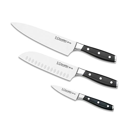 DDF iohEF Kökskniv set, 3-delad professionell skärpa köksknivsats, Santoku-kniv, professionell kockkniv, rostfritt stål skalkniv