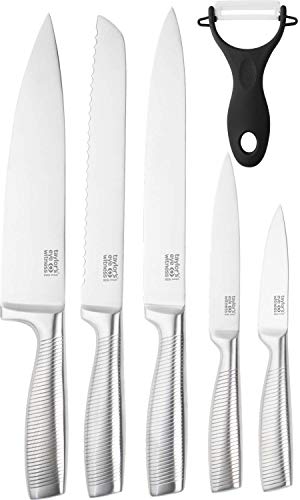 Taylors Eye Witness 6-delat kökskniv set helt knivar i rostfritt stål, paring, alla ändamål, bröd, snideri och kockknivar, halkfria handtag plus keramisk grönsaksskalare, 15 års garanti
