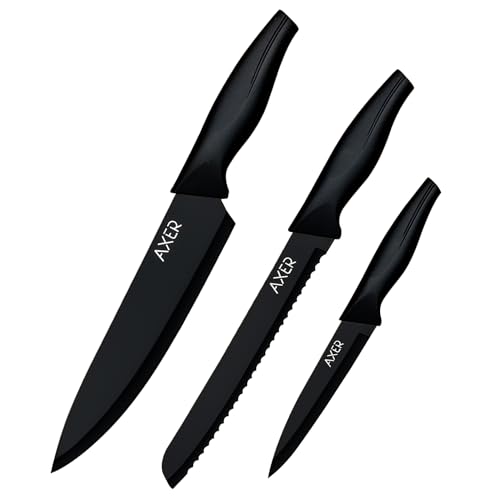 Axer köksknivset svart – vass kökskniv – 3-delad knivset vass kök – kökskniv set – kökskniv svart