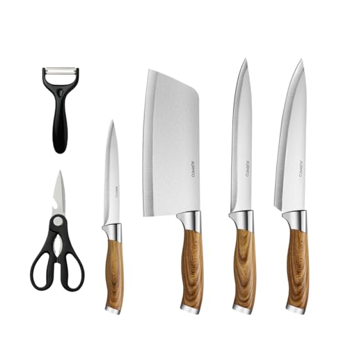 AURMOO 6-delat Knivset, Köksknivset, Set med Köksknivar, 20cm Professionell Kökskniv Tillverkat av Rostfritt Kolstål