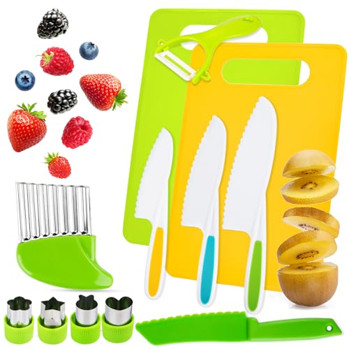 Barnknivset, 12 delar kökskniv set för barn, ökskniv set för barn, Montessori kniv, småbarn, skärbräda, skalare barnknivar för skärning och matlagning av frukt och grönsaker