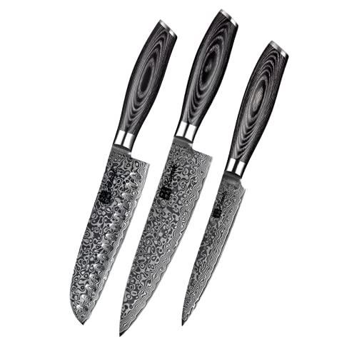KENSAKI uppsättning 3 Damaskus stål köksknivar japansk stil tillverkad av 67 lager Damask stål - Kuro-serien