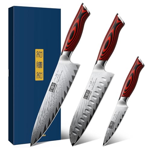 HOSHANHO Damaskus köksknivar, set med 3 extremt vassa knivar, professionell kockknivset med ergonomiskt handtag G10 – presentförpackning