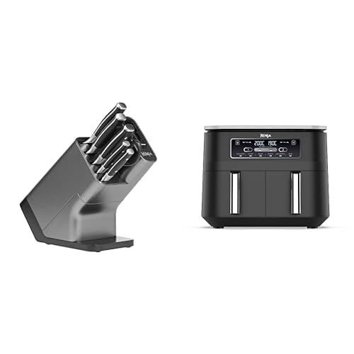 Ninja Foodi dubbel zon digital luftfritös, 2 lådor, 7,6 l, 6-i-1, brukar ingen olja, luftfritera, max krisp, rosta, baka, svart AF300EU & Ninja K32006EU Set med köksknivar, Svart, Silver, 6 st