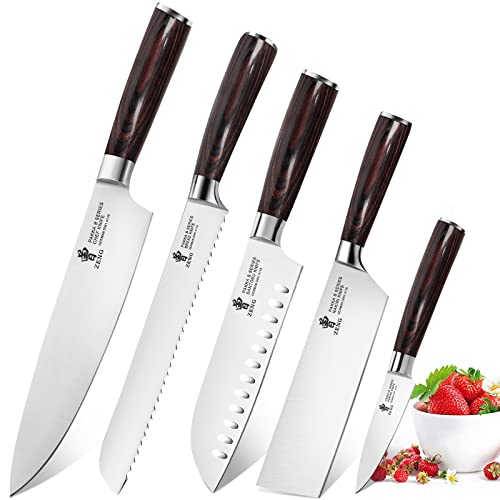 ZENG 5 st kockknivset köksknivar set japanska knivar set Santoku kniv vass mångsidig användbar av tyskt rostfritt stål ergonomiskt paket trähandtag för hem och restaurang
