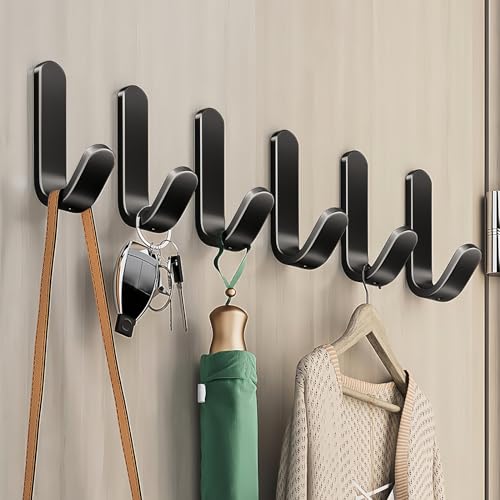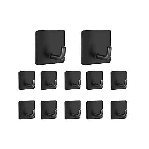 Krokar Självhäftande Handdukskrokar 12 Stycken,IZRA Rostfritt Stål Självhäftande Krokar Väggkrokar Handdukshållare Kökskrokar Klädkrokar Dörrkrokar, Perfekt för Badrum Toalett Kök Kontor, Svart