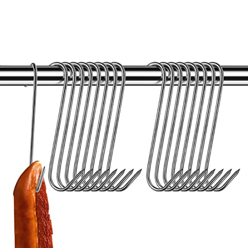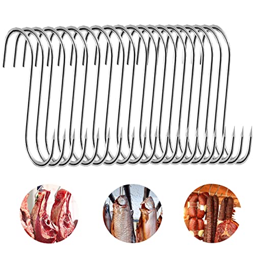 20 stycken köttkrokar, 15 cm S krokar, köttkrokar i rostfritt stål, kökskrokar köttkrokar fiskkrokar med spetsände, robusta och hållbara slaktarkrokar för köttrökning, köttbearbetning, BBQ