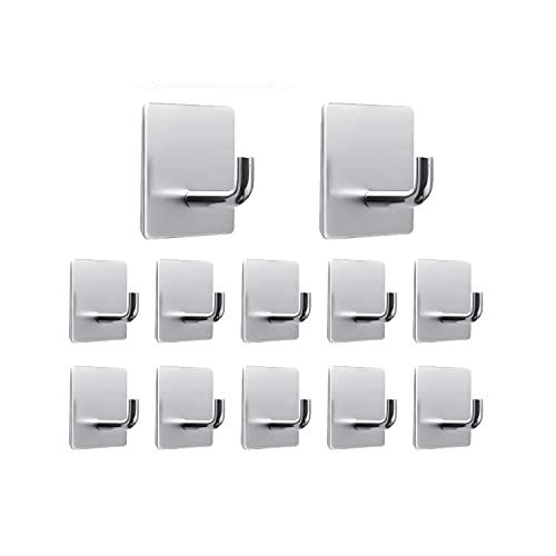 Krokar Självhäftande Handdukskrokar 12 Stycken,IZRA Rostfritt Stål Självhäftande Krokar Väggkrokar Handdukshållare Kökskrokar Klädkrokar Dörrkrokar, Perfekt för Badrum Toalett Kök Kontor, Silver