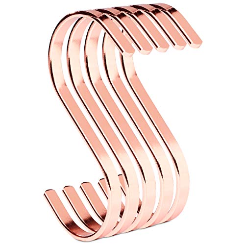 PAMO S krokar ros koppar av metall – set om 5 – kökskrokar av rostfritt stål för att hänga pannor i köket eller kläder på klädstången S-krok stål rostfritt (5, roséguld)