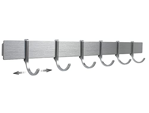 Designfabrik Hamburg | Krokskena, Köksskena, Självhäftande, Hängskena, Skena för Köksredskap | Kökskrokar utan Borrning | 6 Rörliga Krokar | 40 cm | Modern Design silvergrå