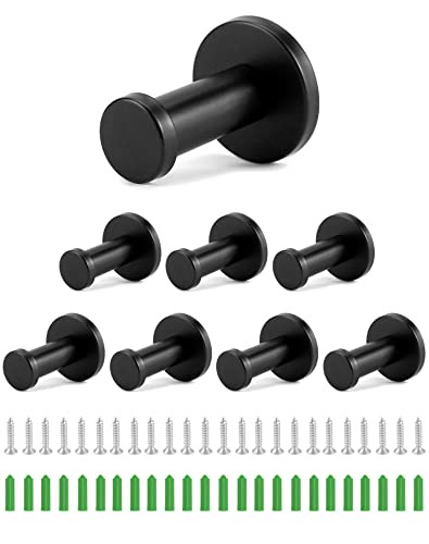 QWORK® 8 stycken klädkrokar svart, 55 mm klädhängare, kökskrokar, rostfritt stål, för badrum, kök, arbetsrum