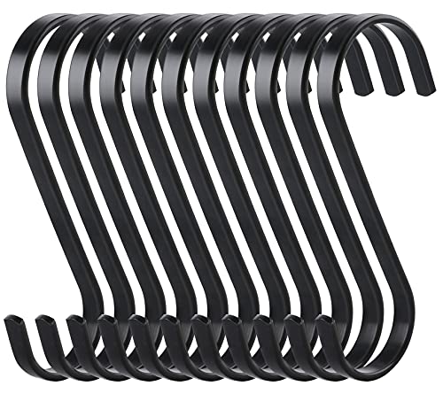 S krokar svart, 10 stycken 8,5 cm kökskrokar i rostfritt stål för upphängning 18/8 rostfri S-formade hängkrokar för kök, badrum, sovrum, kontor och trädgård för att hänga kläder, växter och pannor