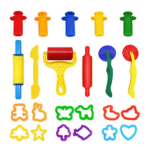 Wonderforu knådningsverktyg deg plastin verktyg, lertillbehör kakskärare köksleksaker, 23 stycken