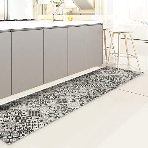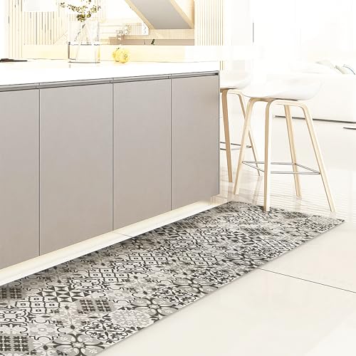 CREARREDA Köksmatta 120 x 50 cm Kakel Grå Vinyl Slip och tvättbar Vinyl Kökspentry, 100% tillverkad i Italy, 83519