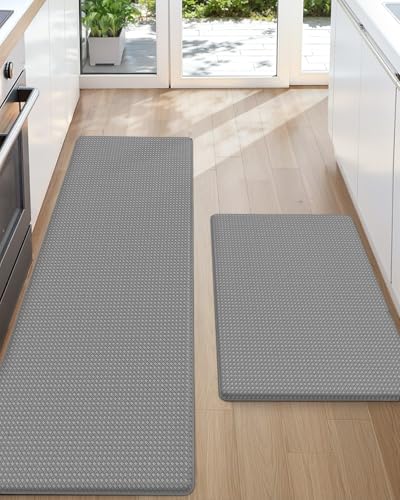 HappyTrends Köksmatta, vadderad, anti-trötthet-köksmatta, 43,9 x 71,1 cm, tjock, vattentät, halkfri, slitstark, ergonomisk, komfortmatta för kök, golv, kontor, tvätt, grå