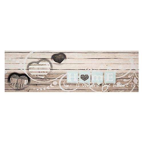 Zala Living tvättbar köksmatta köksmatta matta matta löpare Home Is Where The Heart Is (45 x 140 cm, 100 % polyamid, halkfri, golvvärme lämplig), kräm grå