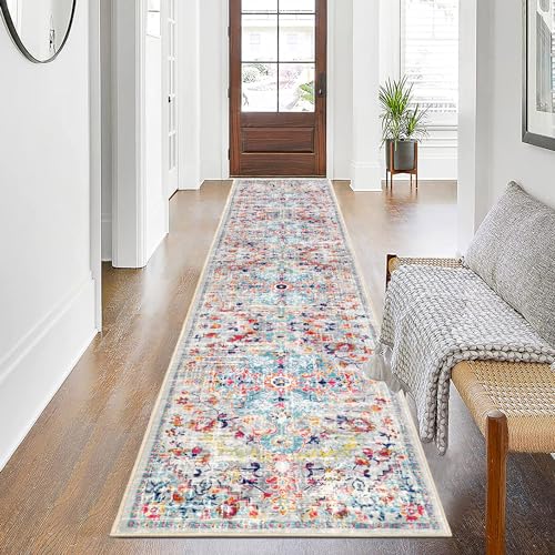 SHACOS Lång korridor matta mjuk halkfri 60 x 300 cm tvättbar köksmatta lång absorberande grå vintage entrématta inomhus lång bohemisk för kök, hall, passage, sovrum