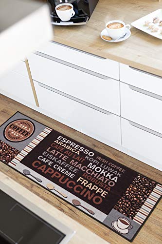 andiamo Matta, löpare, café, krämfärgad – kökslöpare, hall, löpare med kaffebokstäver – köksmatta, kökslöpare, 50 x 150 cm brun-grå