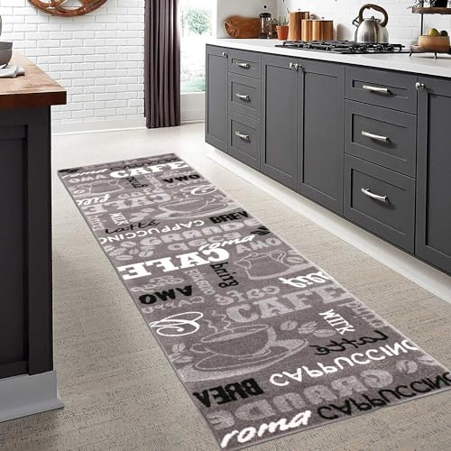VIMODA Köksmatta grå trendig kaffematta, olika teckensnitt och mönster kaffe, mått: 80 x 250 cm